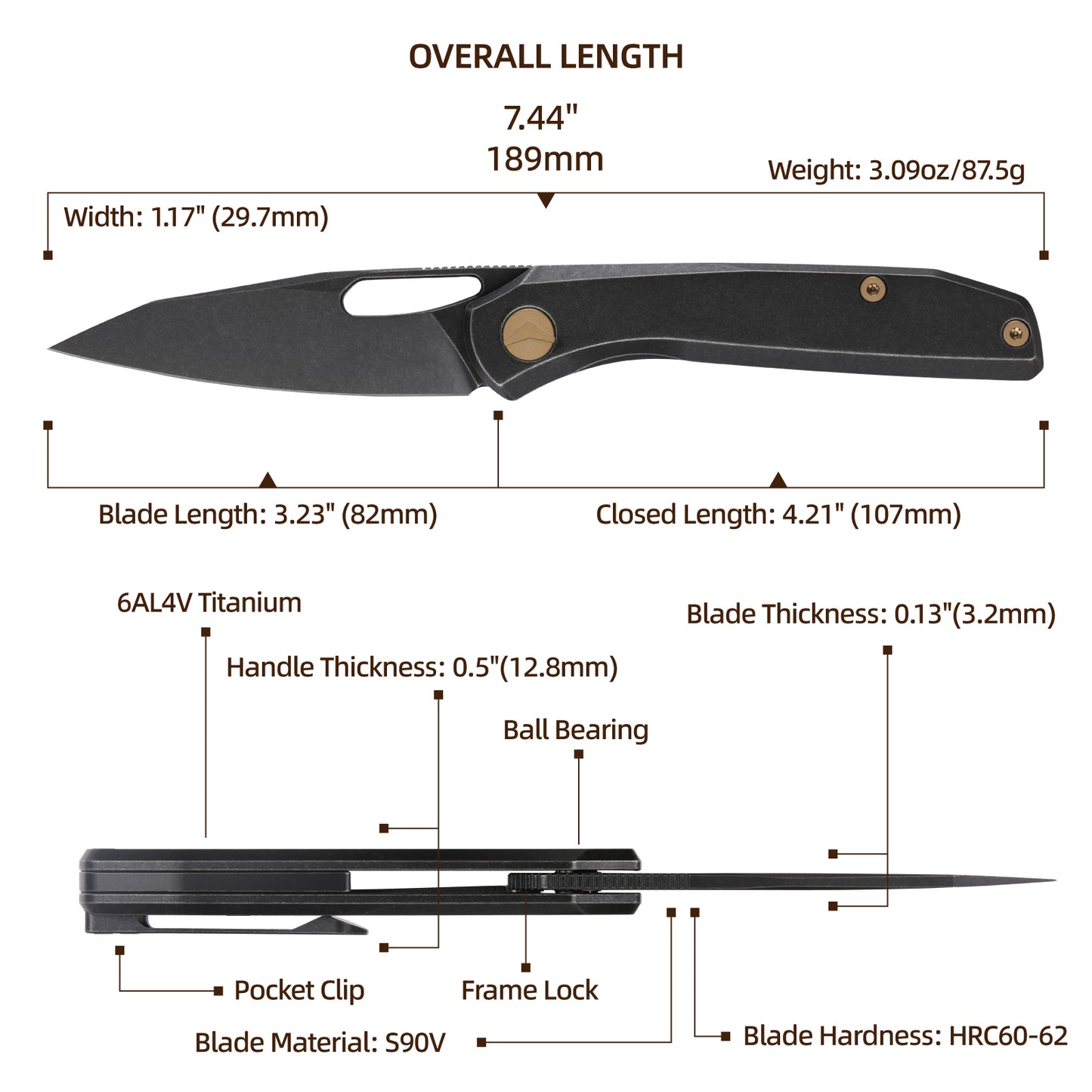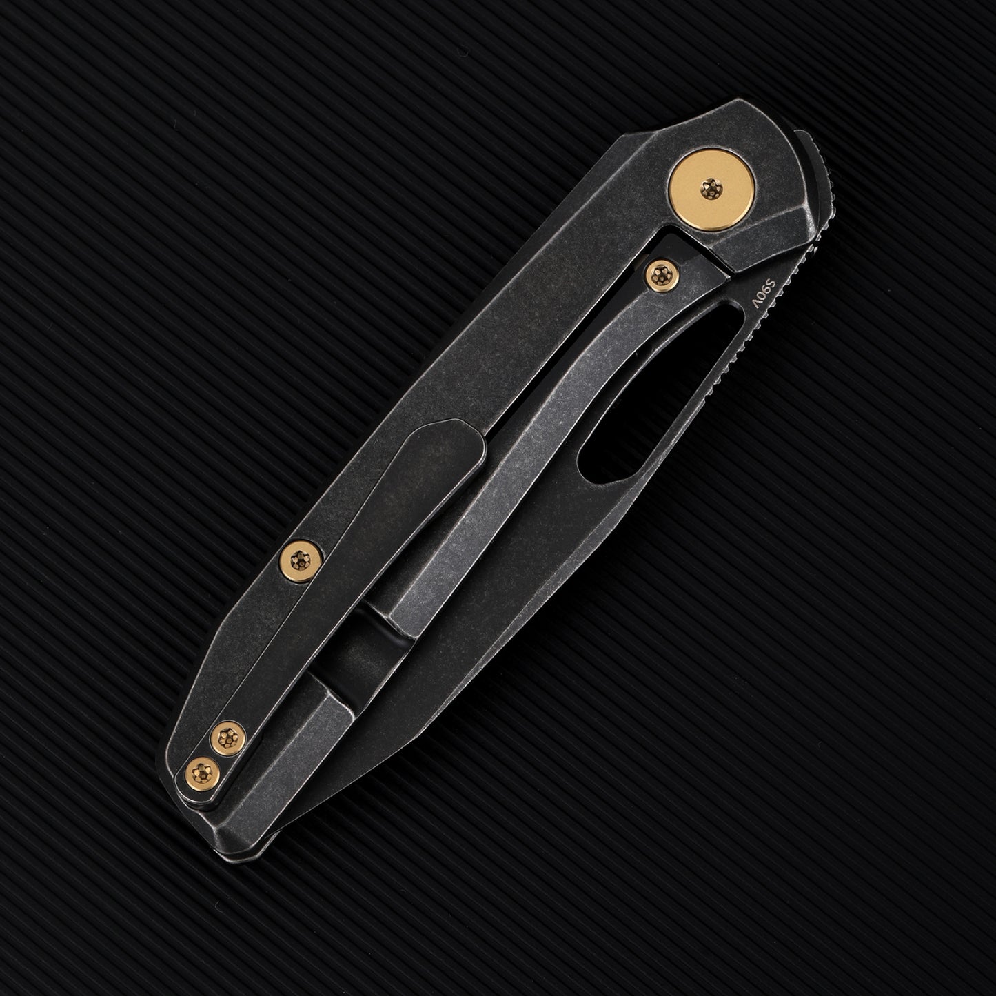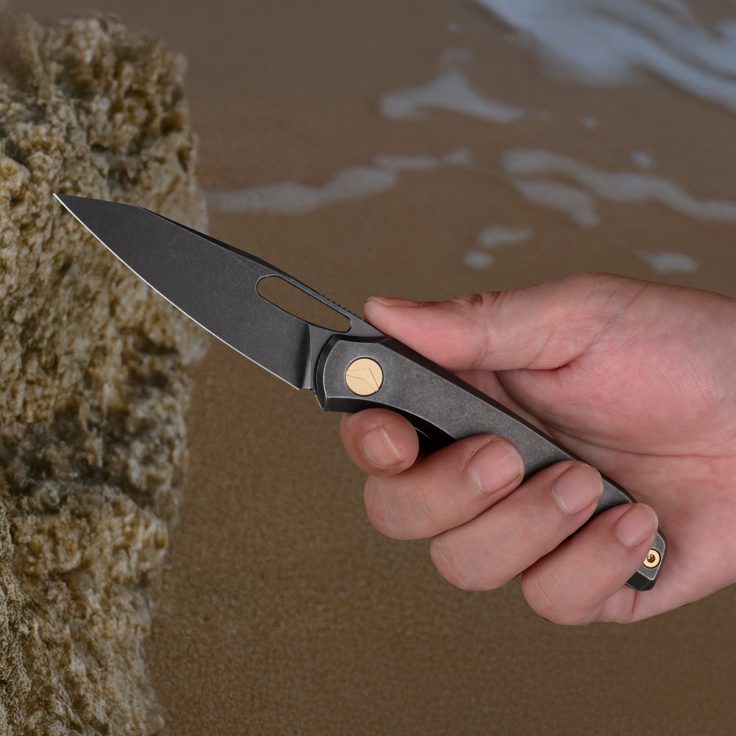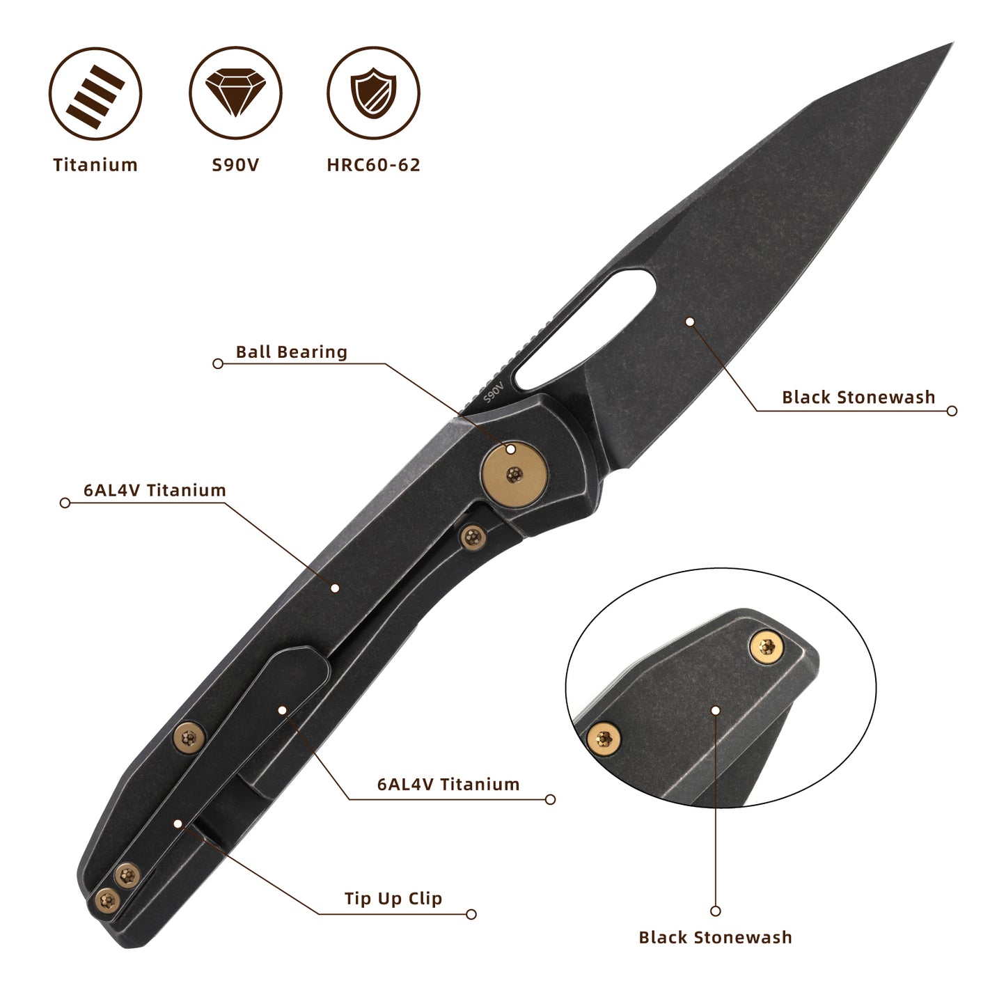 The Xandros, with an overall length of 7.44" and a precision-ground 3.23" S90V blade, delivers elite-tier edge retention and superior performance. The hand-rubbed satin finish provides a flawless, low-glide cutting experience that is as refined as it is functional. The handle is made of 6AL4V titanium, tactile grip and exceptional durability.