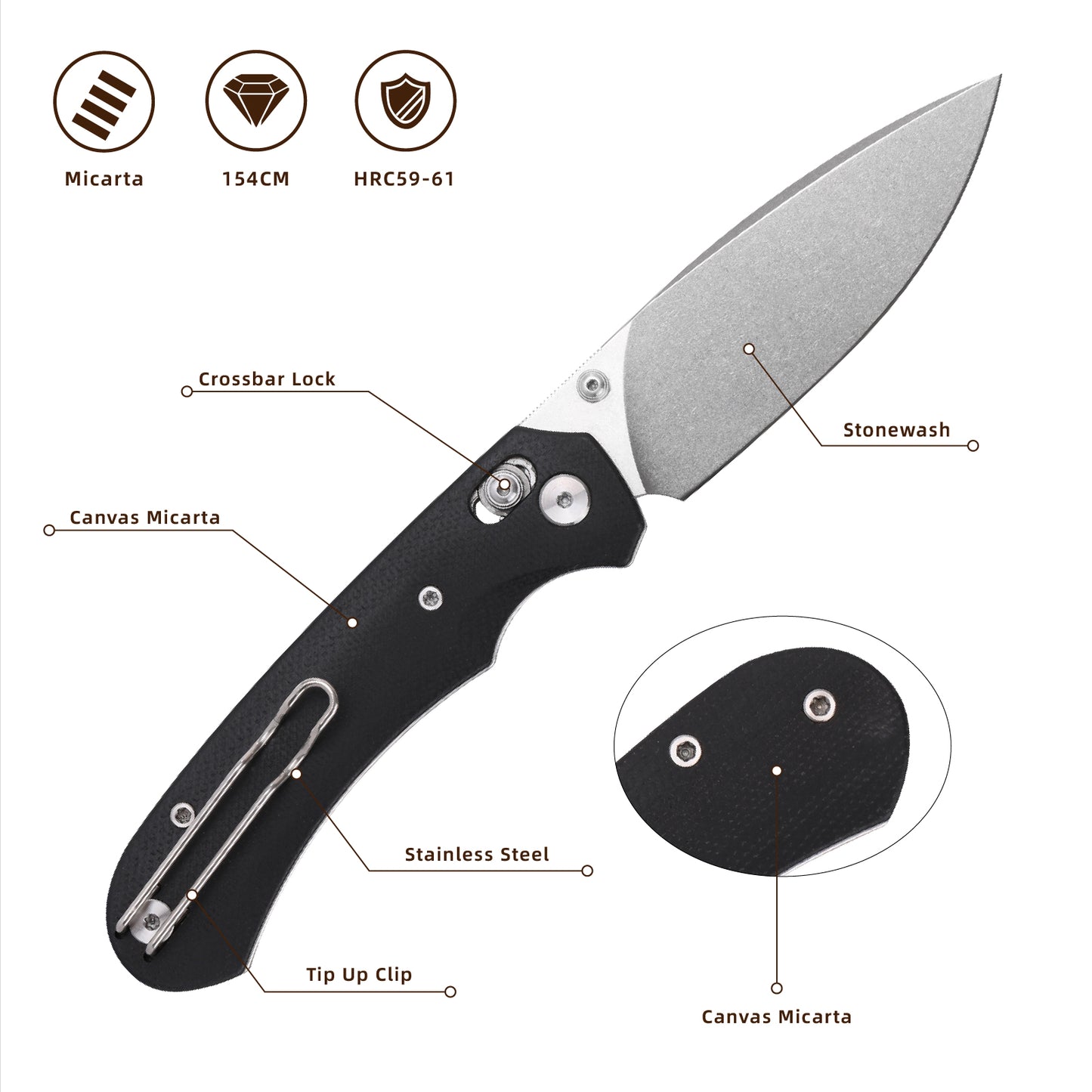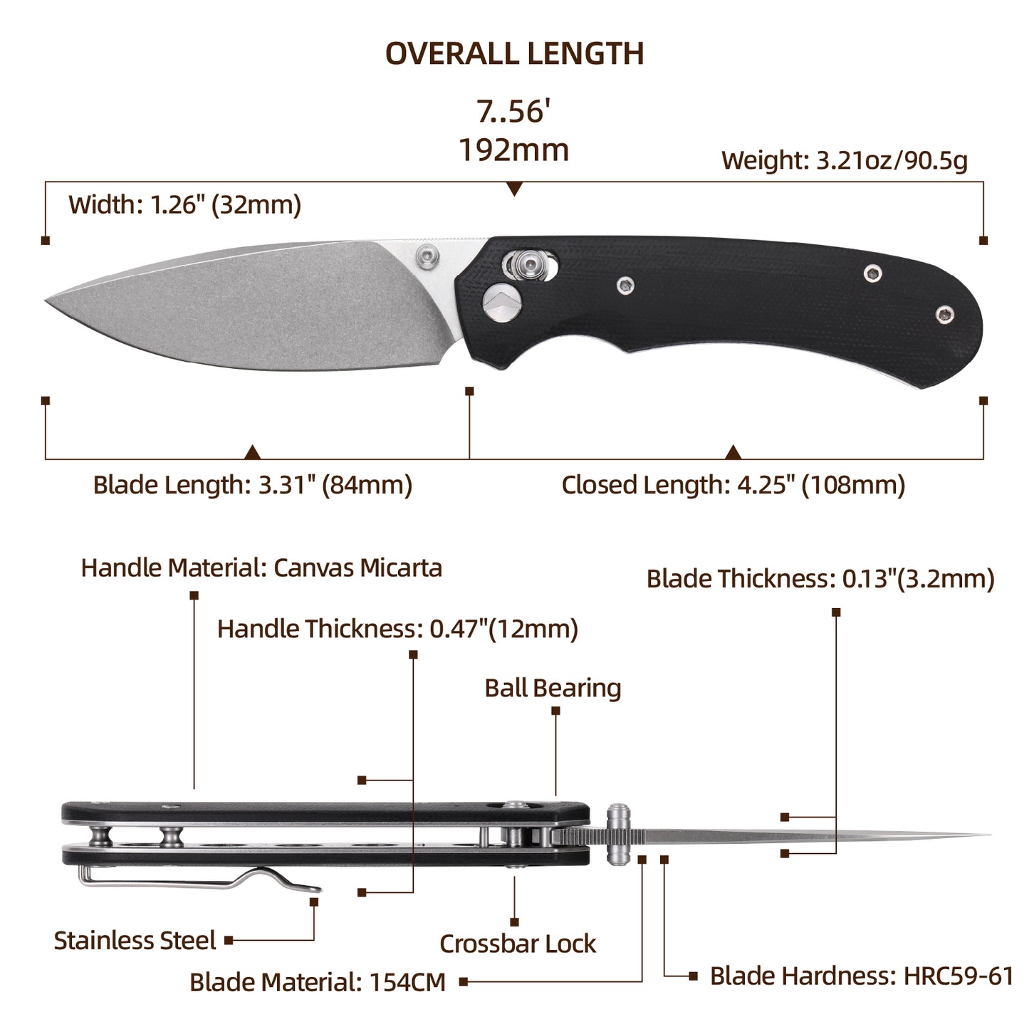 Spectrum CP features a smooth crossbar lock for lightning-fast deployment and rock-solid reliability. The razor-sharp drop point blade slices through tasks with effortless precision, while the micarta handle delivers a flawless balance of strength and refined aesthetics.