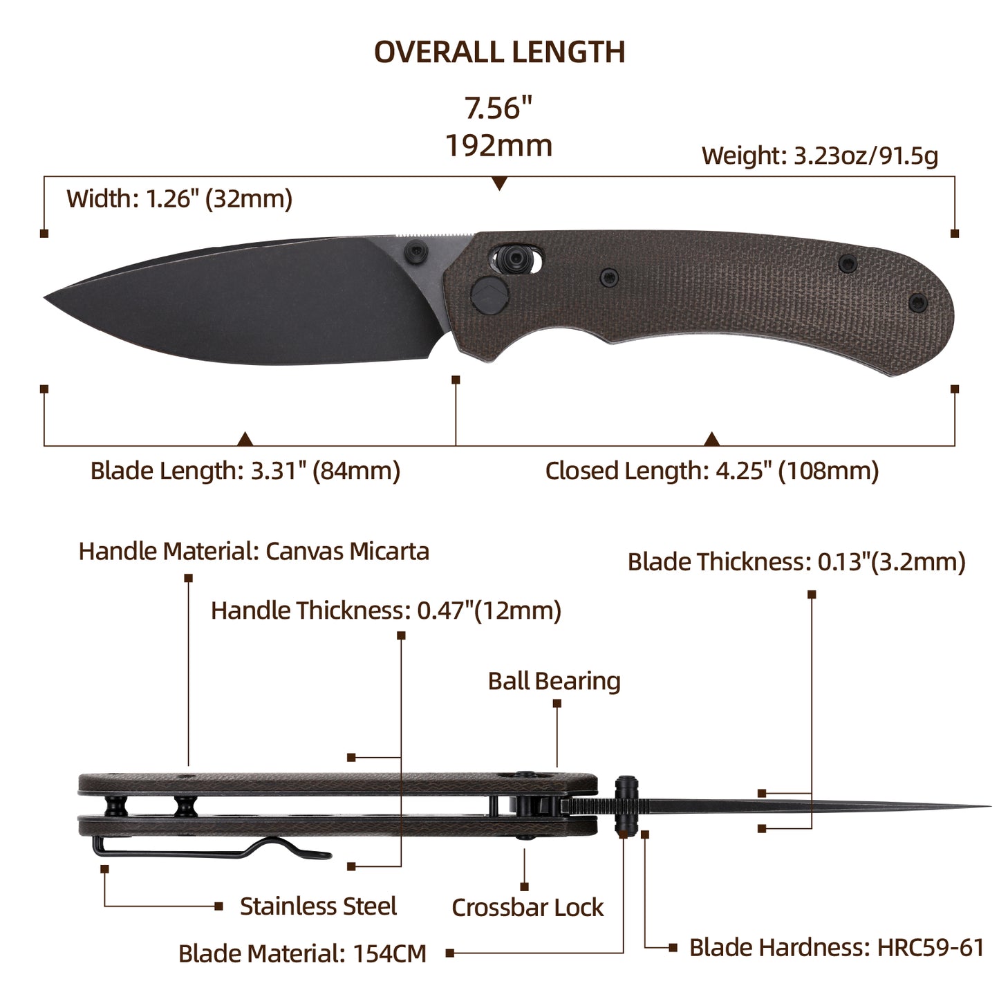 Spectrum CP features a smooth crossbar lock for lightning-fast deployment and rock-solid reliability. The razor-sharp drop point blade slices through tasks with effortless precision, while the micarta handle delivers a flawless balance of strength and refined aesthetics.